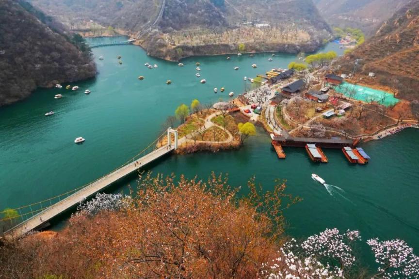 北台上水库(雁栖湖)湖水清澈,周边群山环抱,风景秀丽。五一期间,湖岸边绿树成荫,繁花似锦。乘船游览,可欣赏到雁栖湖国际会议中心等现代建筑与自然景观相得益彰的美景,感受怀柔的独特魅力。
